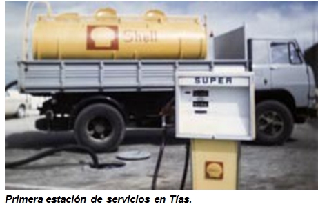 a la marca recién creada de Autos Riverol, este promotor va a poner en marcha en 1967 la primera gasolinera de Tías que, a su vez, era la primera que se promovía fuera de la capital de la isla. En la misma carretera de Tías a Puerto del Carmen, hoy calle Libertad, se comienza a dispensar combustibles para coches y camiones, en tres rudimentarios surtidores, de las modalidades súper, normal y diesel, que funcionaban a motor, ya que el fluido eléctrico no había llegado aún al pueblo. El horario era de lunes a sábado y los domingos se cerraba. La pequeña área de servicios de la marca Shell creó empleo y por allí pasaron como “gasolineros” muchos vecinos del pueblo, e incluso uno de los hijos del empresario.