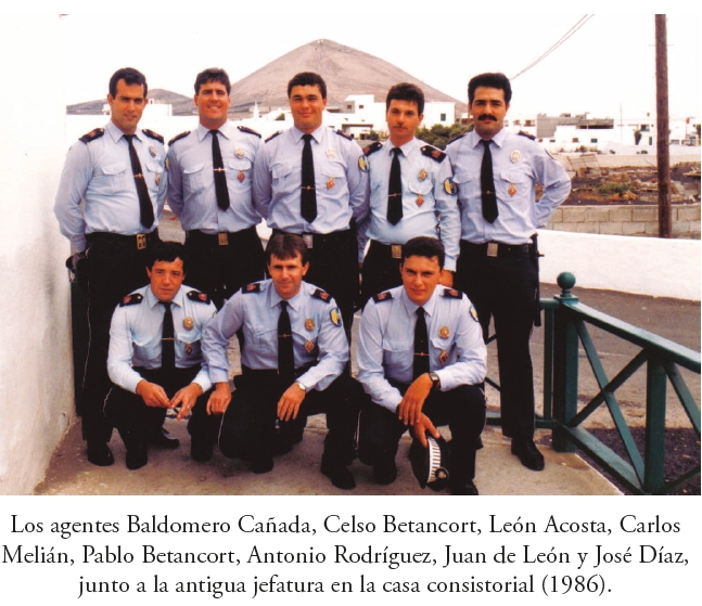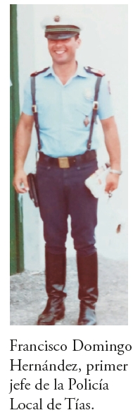 El alcalde, cuando toma posesión, se encuentra con cuatro funcionarios, dos trabajadores de vías y obras y tres guardias: Rafael, Fefo y Paco. Este último pasará a ostentar la jefatura de la Policía Municipal de Tías. Se inicia un periodo de organización de la vida municipal donde cada concejal asume responsabilidades de gestión de su área. El Ayuntamiento adquiere dos motos Honda y en abril de 1980 se compra el primer coche patrulla para la policía de la marca SEAT 131 (ranchera) con matrícula GC-2741-N, con torre y sirena autoconstruida con elementos adquiridos en la ferretería y puertas delanteras pintadas de negro sin escudo municipal.
