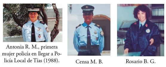 Tías será el municipio pionero en incorporar a la mujer al cuerpo de la Policía Local. En la convocatoria de plazas del año 1988 acceden tres mujeres y siete hombres.